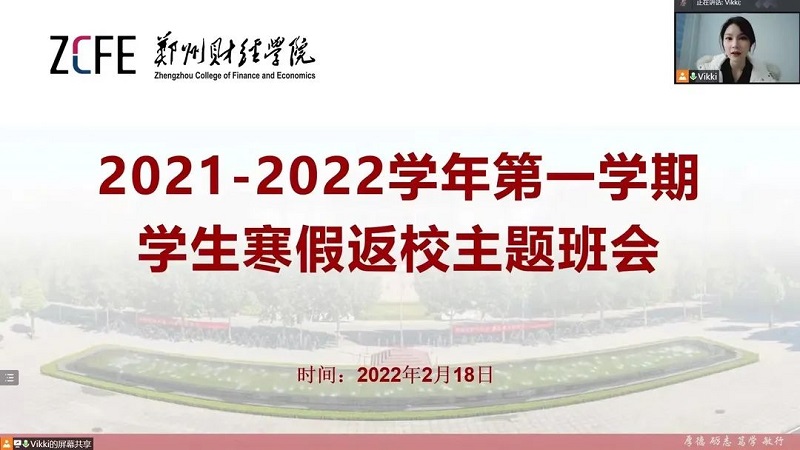 2月18日上午,统计与大数据学院通过腾讯会议APP线上召开2021-2022学年第一学期学生寒假返校主题班会。统计与大数据学院全体学生参加,会议分别由辅导员宋雪珂、辅导员王宗莹主持。